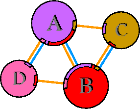 Interacting chains are joined by coloured lines, each representing