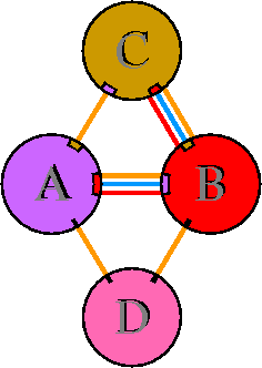 Interacting chains are joined by coloured lines, each representing