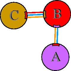 Interacting chains are joined by coloured lines, each representing