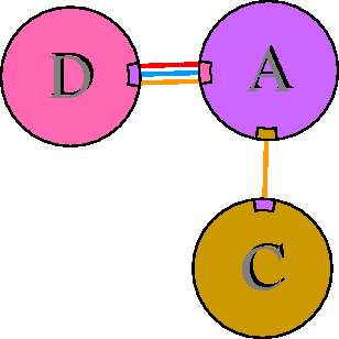 Interacting chains are joined by coloured lines, each representing