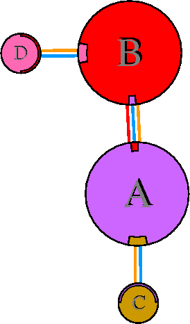Interacting chains are joined by coloured lines, each representing