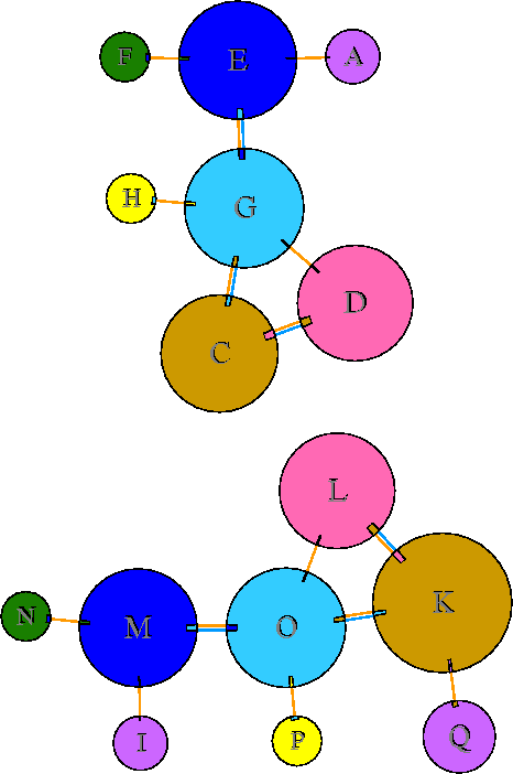 Interacting chains are joined by coloured lines, each representing