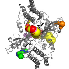 Tunnels are interior spaces connected with the protein surrounding. Only channels longer than 15 Å are shown. |