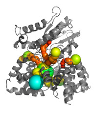 Tunnels are interior spaces connected with the protein surrounding. Only channels longer than 15 Å are shown. |
