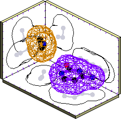 The ticks on the back walls in the plots correspond to distances of 1 Angstrom.