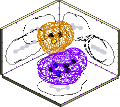The ticks on the back walls in the plots correspond to distances of 1 Angstrom.