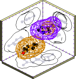 The ticks on the back walls in the plots correspond to distances of 1 Angstrom.