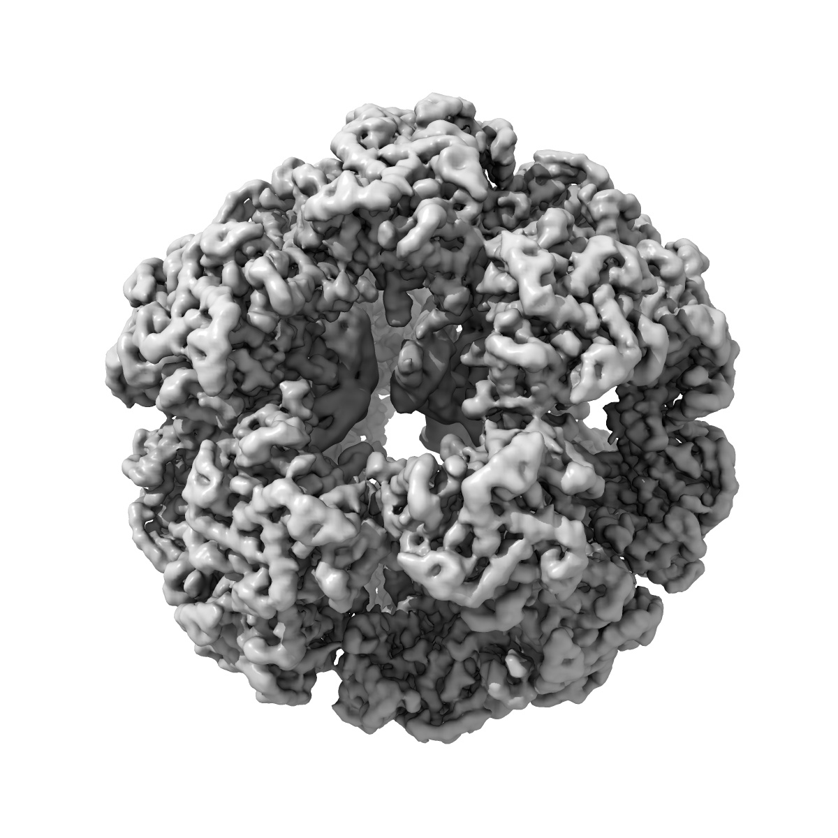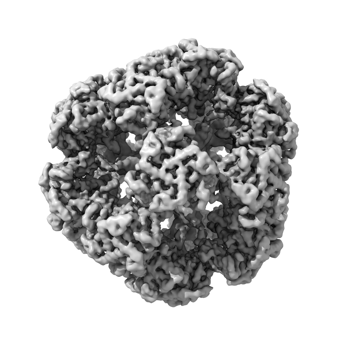 E2 core of the fungal Pyruvate dehydrogenase complex with flexible/oversym. periphery, structured core and S4Y-structured interior.