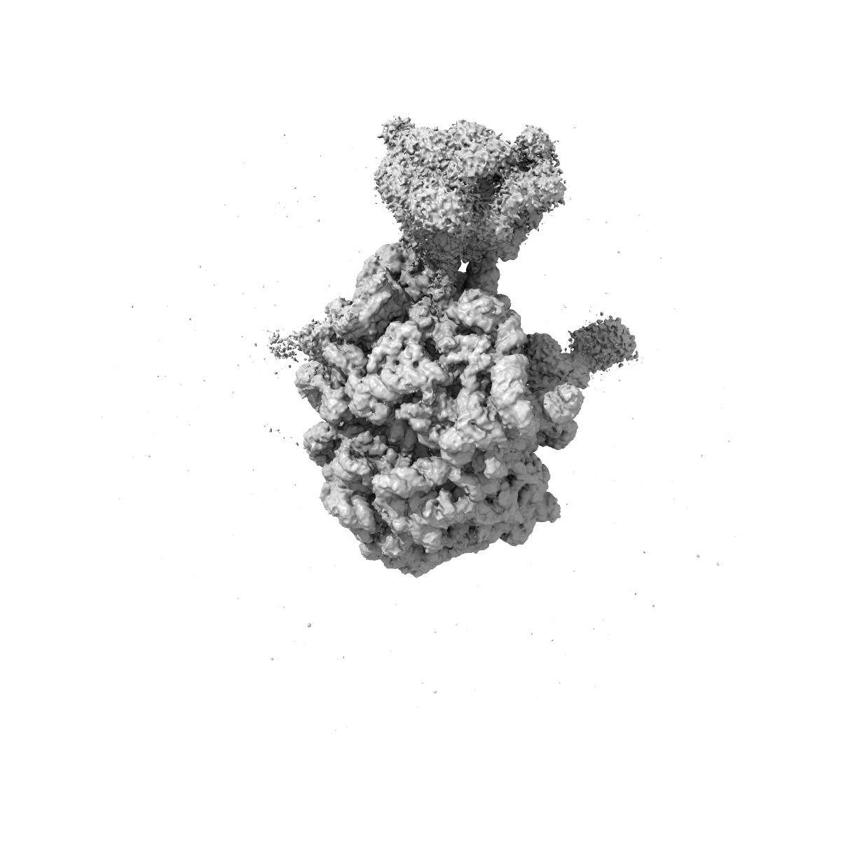 Sample: Escherichia coli transcription-translation coupled complex class B (TTC-B) containing RfaH bound to ops signal, mRNA with a 24 nt long spacer, and fMet-tRNAs in E-site and P-site of the ribosome