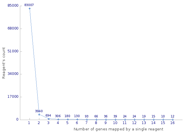 Reagents to gene mapping — number of mapped genes less than 20: