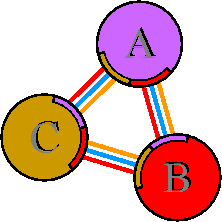 Interacting chains are joined by coloured lines, each representing
