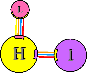 Interacting chains are joined by coloured lines, each representing