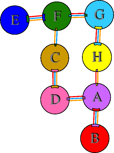 Interacting chains are joined by coloured lines, each representing