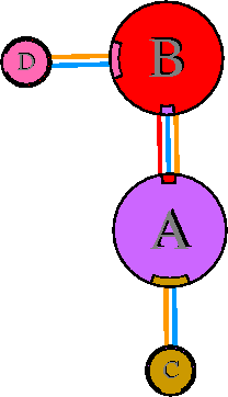 Interacting chains are joined by coloured lines, each representing