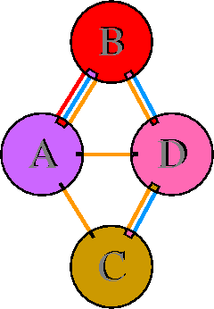 Interacting chains are joined by coloured lines, each representing