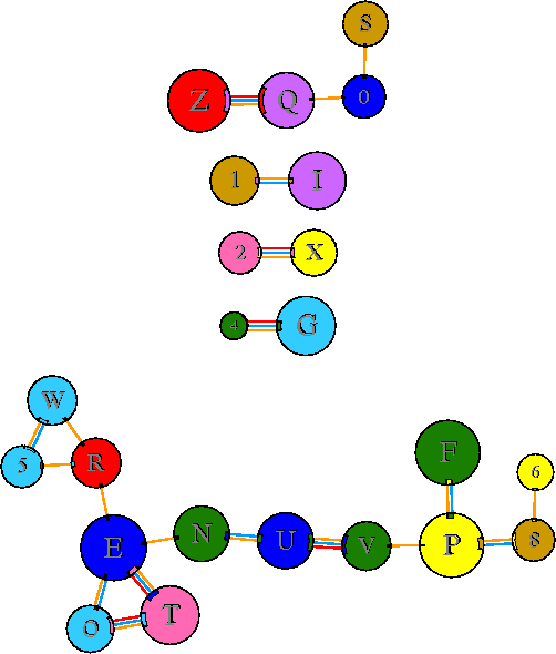 Interacting chains are joined by coloured lines, each representing