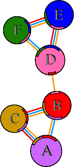 Interacting chains are joined by coloured lines, each representing
