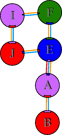 Interacting chains are joined by coloured lines, each representing