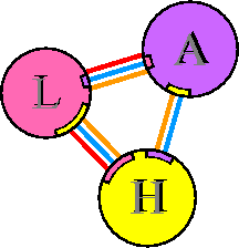 Interacting chains are joined by coloured lines, each representing