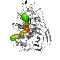 Tunnels are interior spaces connected with the protein surrounding. Only channels longer than 15 Å are shown. |