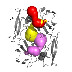 Tunnels are interior spaces connected with the protein surrounding. Only channels longer than 15 Å are shown. |
