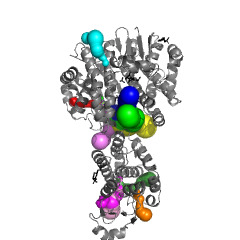 Tunnels are interior spaces connected with the protein surrounding. Only channels longer than 15 Å are shown. |